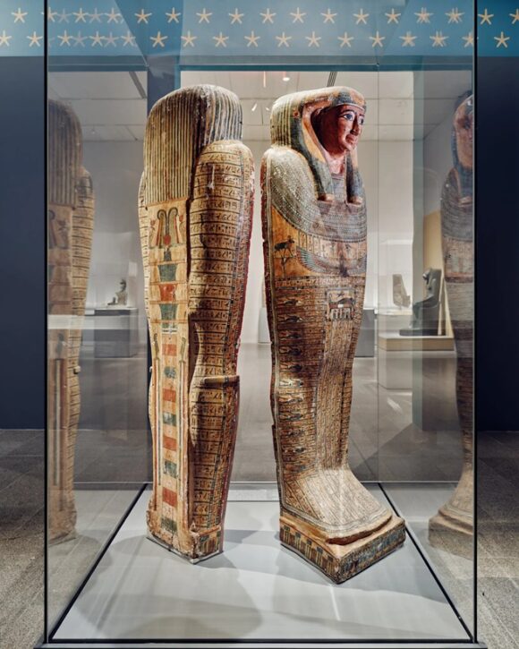 Divine Egypt brings together almost 250 works of art and objects, many of them on loan from institutions such as the Museum of Fine Arts, Boston, the Musée du Louvre, Paris, and the Ny Carlsberg Glyptotek, Copenhagen, to examine the imagery associated with the most important deities in ancient Egypt’s massive body of gods. Depictions of the stately falcon-headed Horus, the lion-headed Sakhmet, and the serene, shrouded Osiris reveal the striking ways the kings and people of ancient Egypt recognized and interacted with their gods.